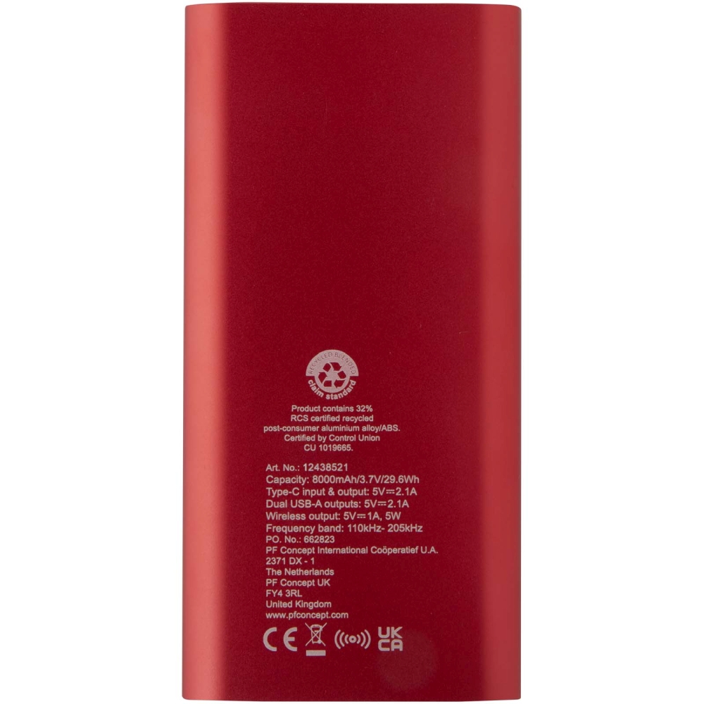 Juice 8000 mAh Type-C recycled aluminium wireless power bank, red