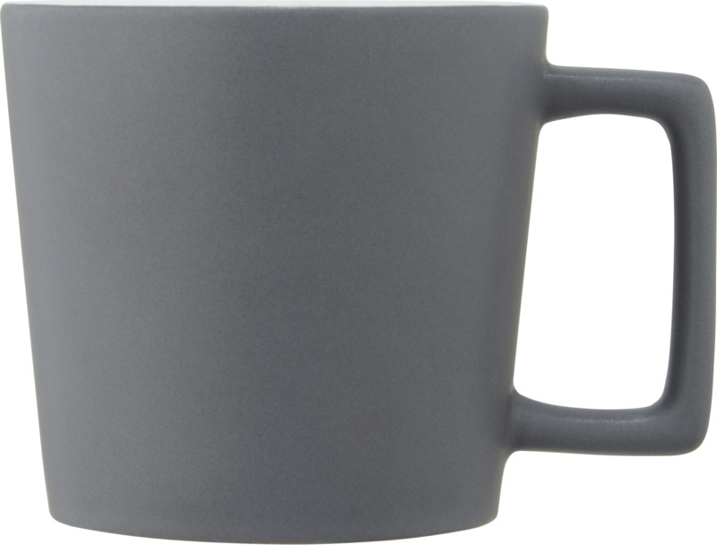 Ceramic mug with a modern design and matt finish. Volume capacity is 370 ml. Dishwasher safe for all decoration methods. Presented in a recycled cardboard gift box. Ceramic.