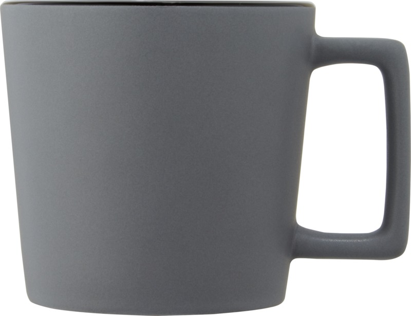 Ceramic mug with a modern design and matt finish. Volume capacity is 370 ml. Dishwasher safe for all decoration methods. Presented in a recycled cardboard gift box. Ceramic.
