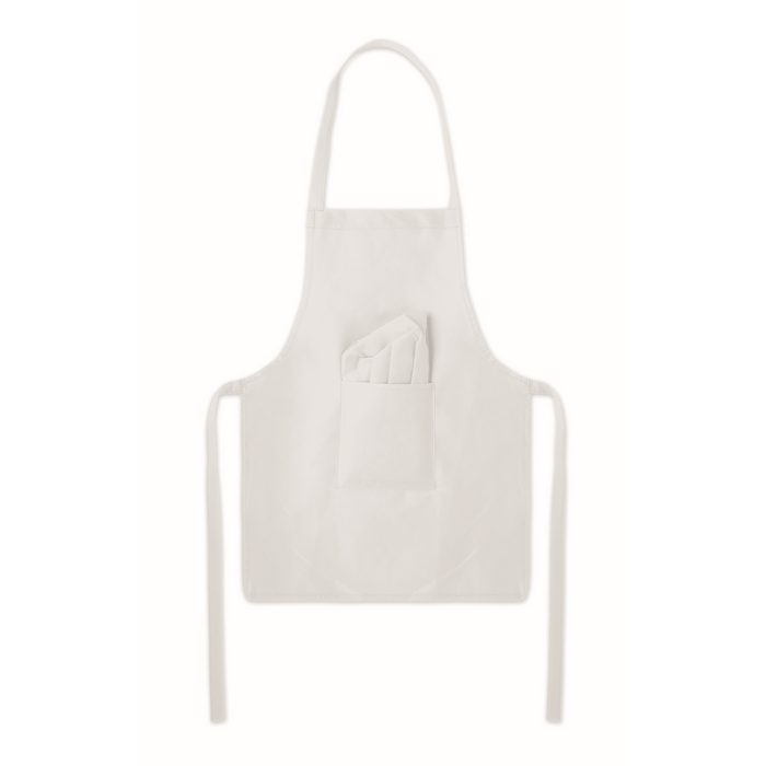 Kids chefs hat and apron set in RPET non-woven 80 gr/m2. Dimensions: 42.5 x 57 cm