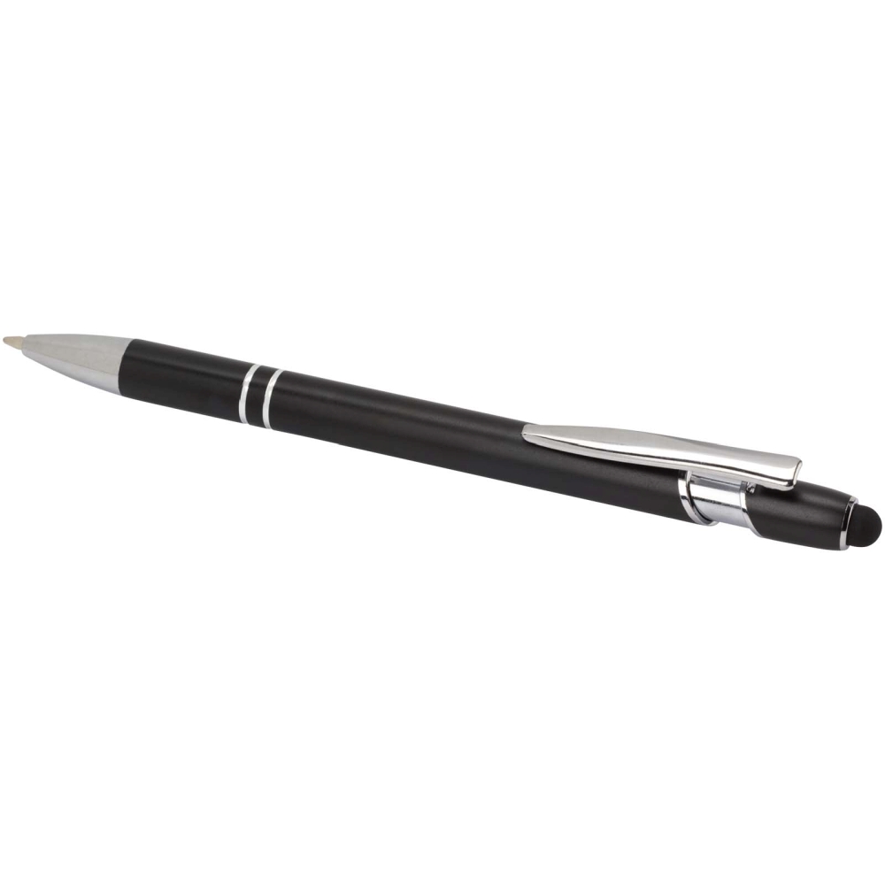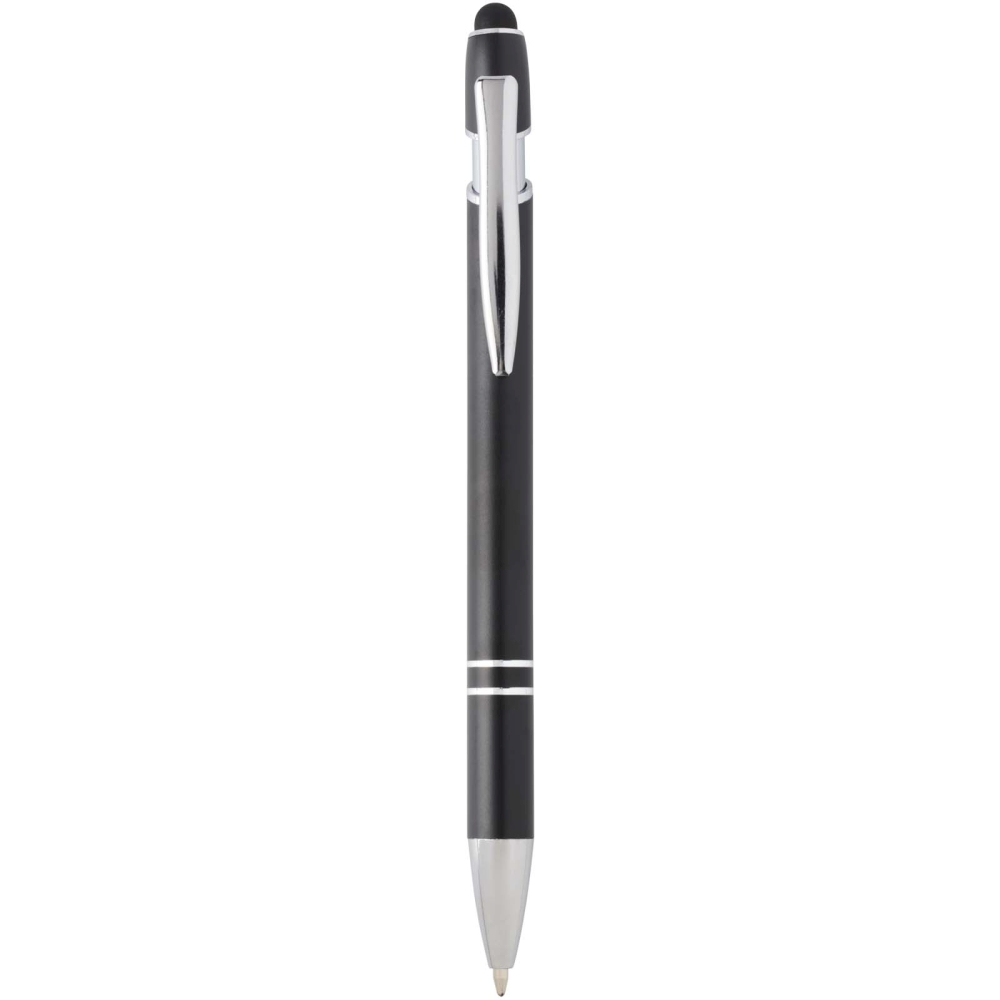 The Kish ballpoint pen with silver finish has a barrel made of recycled aluminium with a touch stylus made of silicone. Recycled aluminium reduces the amount of waste in landfills and helps to conserve natural resources aiming to reduce greenhouse emissions. Ink colour: Black. Writing length: 800 metres. Nib size: 1.0 mm. Dimensions: 14,4 x O 1 cm