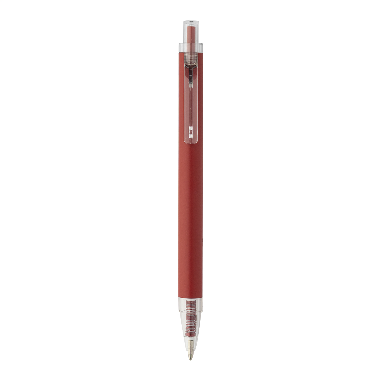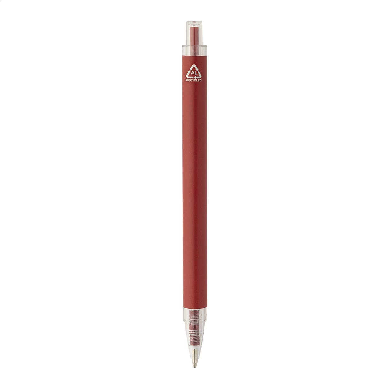 Recycled aluminium ballpoint with matte finish body and transparent RPET parts. With blue refill.