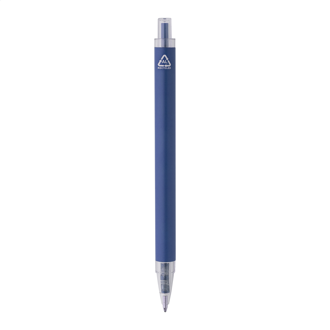 Recycled aluminium ballpoint with matte finish body and transparent RPET parts. With blue refill.