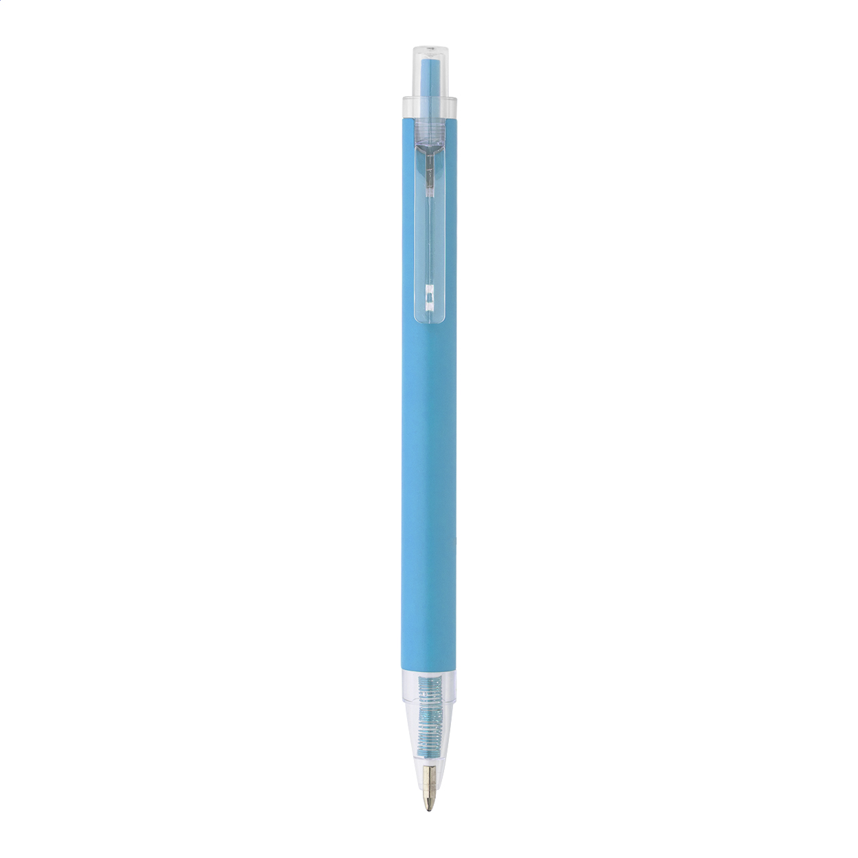 Recycled aluminium ballpoint with matte finish body and transparent RPET parts. With blue refill.