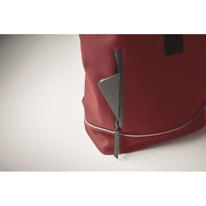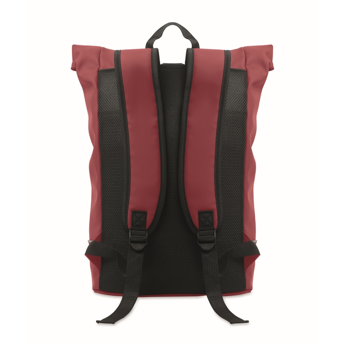 Laptop 15" roll top PU backpack, burgundy