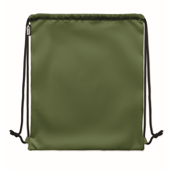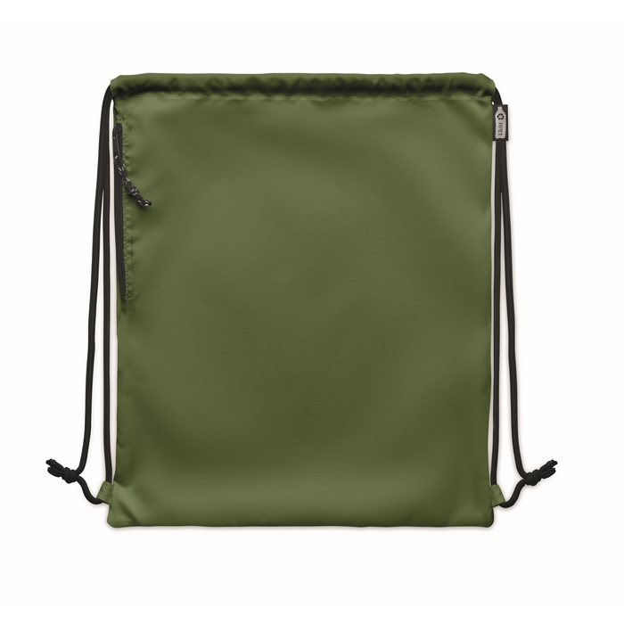 Large drawstring bag in 300D RPET polyester with side zippered outer pocket. Rozměry: 40 x 48 cm