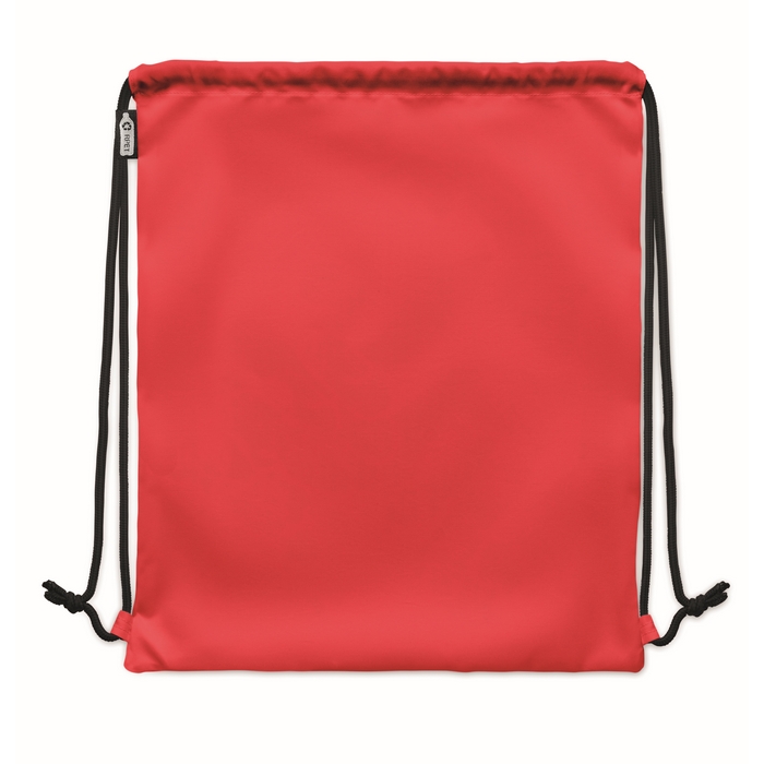 Large drawstring bag in 300D RPET polyester with side zippered outer pocket. Rozměry: 40 x 48 cm