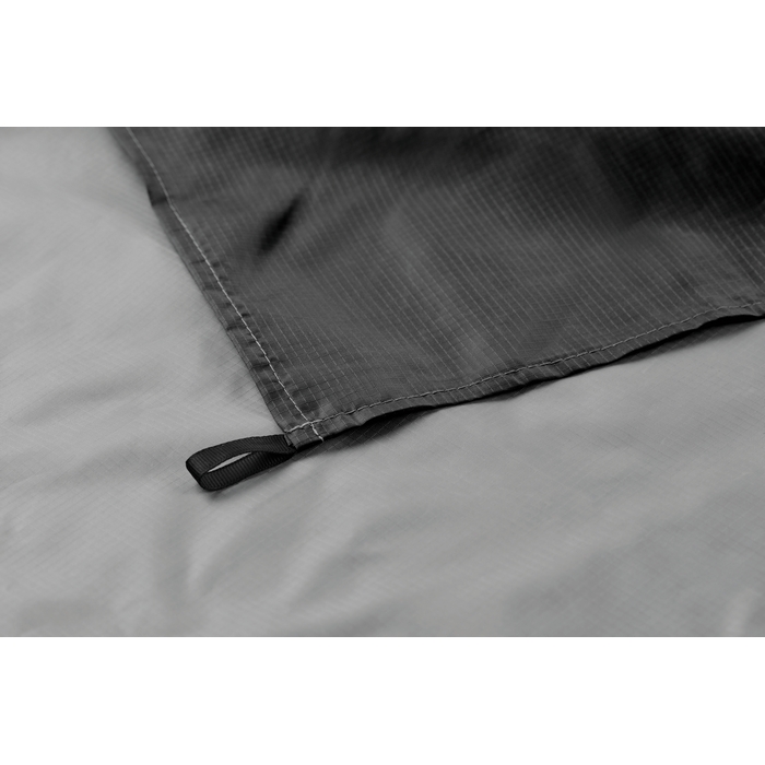 Lightweight beach mat in 210T polyester measuring 200x210cm. Includes 4 black hooks and a matching drawstring pouch for easy carrying. Dimensions: 200 x 210 cm