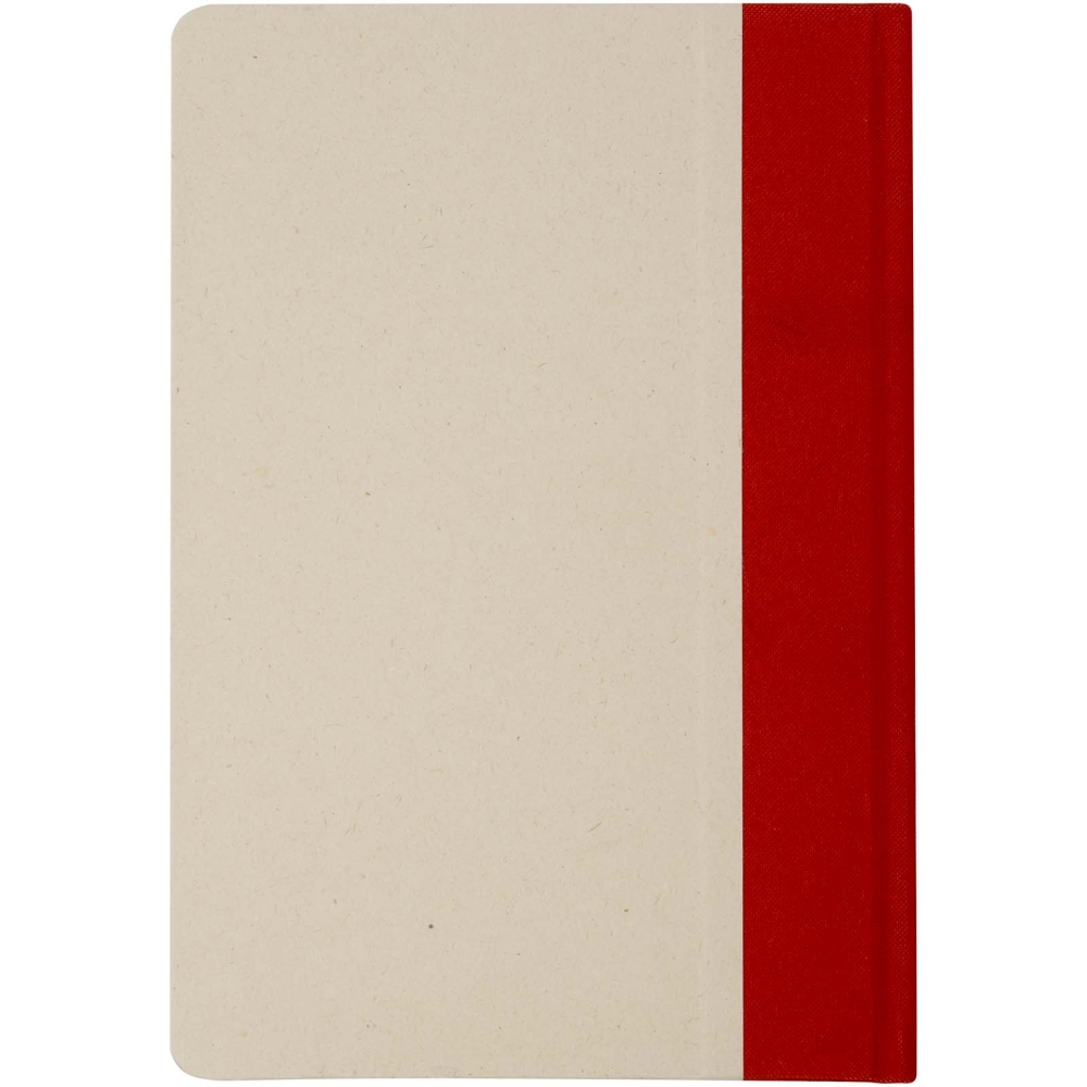 Liliana A5 hard cover notebook with rounded corners and 80 lined sheets of 90 g/m2 paper. The cover is made of RPET and sugar cane paper. Dimensions: 21 x 14,5 cm