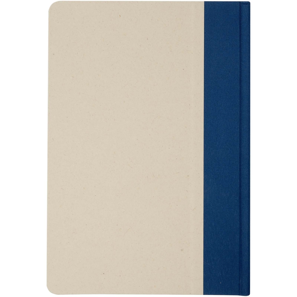 Liliana A5 hard cover notebook with rounded corners and 80 lined sheets of 90 g/m2 paper. The cover is made of RPET and sugar cane paper. Dimensions: 21 x 14,5 cm