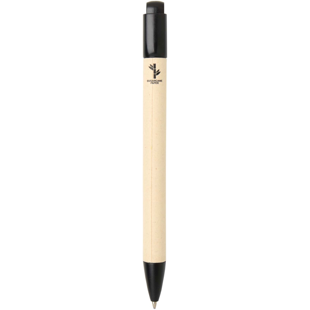 Liliana sugarcane paper ballpoint pen (blue ink), solid black