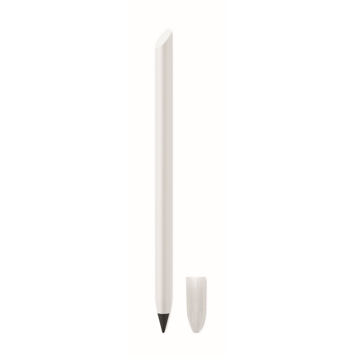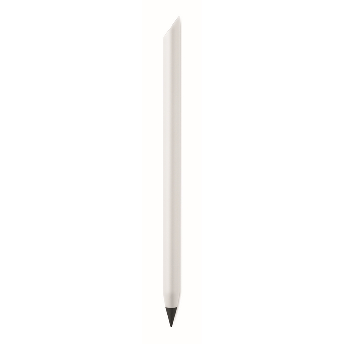 Long lasting recycled aluminium inkless pen. The pen writes with the graphite tip that has a plastic protection cover. Dimensions: O0.8 x 15.1 cm