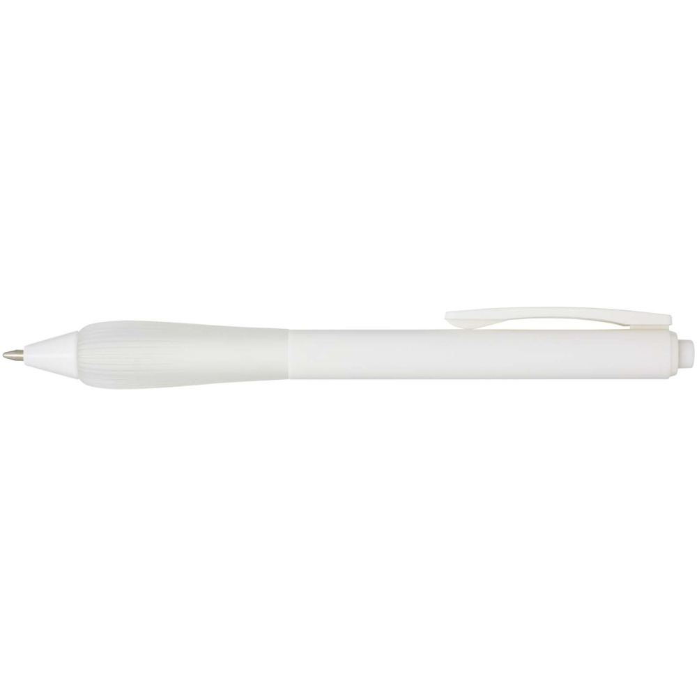 Recycled plastic ballpoint pen with a rubberized barrel, and grip made of TPR. Ink colour: Blue. Writing length: 1000 metres. Nib size: 1.0 mm. Dimensions: 14,3 x O 1,02 cm