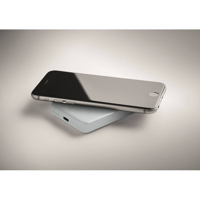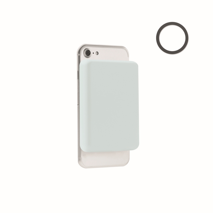 Magnetic wireless charger (18W) and power Bank (5000 mAh). Output: DC 9V/2,22A (18 W) ideal for quick charging. Including additional magnetic metal ring to support charging of other non-magnetic wireless chargeable phones. In/Output: Type-C. Rozměry: 9,2 x 6,2 x 1,3 cm
