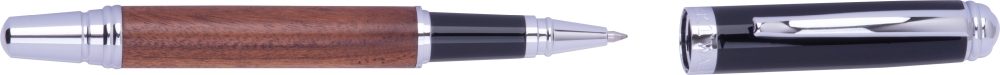 Mark Twain writing set, blue ink, consisting of a ballpoint pen (1200 m writing length) and a rollerball pen (400 m writing length) made of wood and stainless steel, small Mark Twain logo on the silver ring. Delivered in a high-quality black box. Dimensions: 18,5 x 8 x 4 cm
