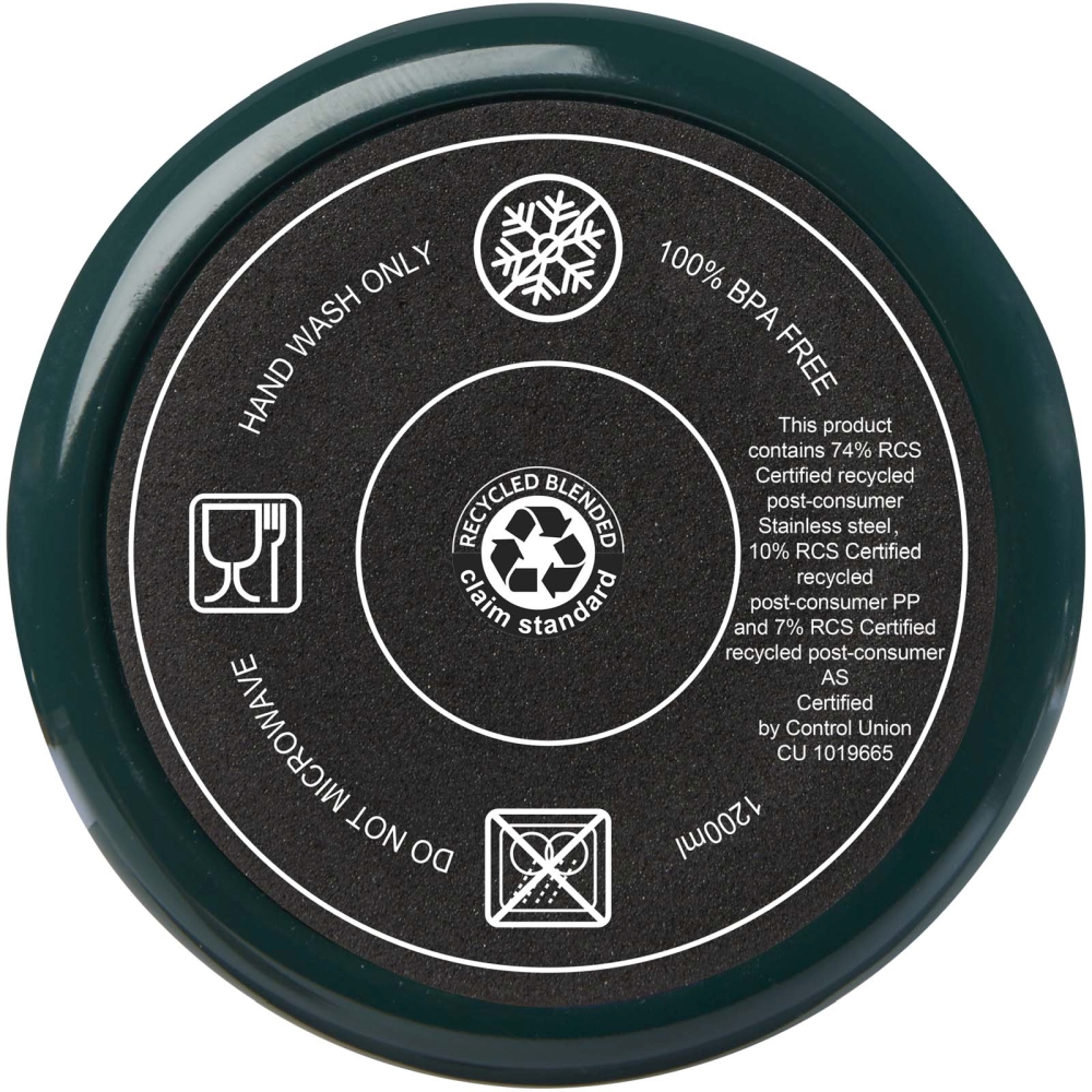 The Melbourne tumbler features double-wall air insulation, keeping drinks hot for up to 2 hours and cold for up to 4 hours. The inner wall of the tumbler is made from recycled plastic and the outer wall is made from RCS-certified recycled stainless steel. The tumbler holds 1200 ml so you can stay hydrated in style all day long. Features a splash-proof dual-vent lid with a twist-lock cap. Comes with a food-grade recycled straw. Hand wash only. Dimensions: 13,8 x 26,1 x 10 x O 10 cm