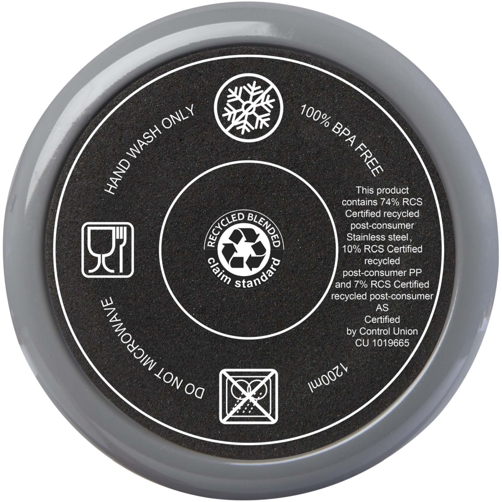 The Melbourne tumbler features double-wall air insulation, keeping drinks hot for up to 2 hours and cold for up to 4 hours. The inner wall of the tumbler is made from recycled plastic and the outer wall is made from RCS-certified recycled stainless steel. The tumbler holds 1200 ml so you can stay hydrated in style all day long. Features a splash-proof dual-vent lid with a twist-lock cap. Comes with a food-grade recycled straw. Hand wash only. Dimensions: 13,8 x 26,1 x 10 x O 10 cm