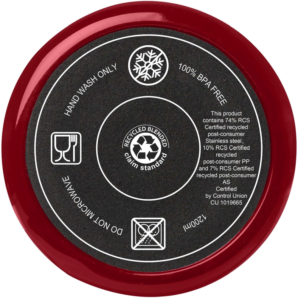 The Melbourne tumbler features double-wall air insulation, keeping drinks hot for up to 2 hours and cold for up to 4 hours. The inner wall of the tumbler is made from recycled plastic and the outer wall is made from RCS-certified recycled stainless steel. The tumbler holds 1200 ml so you can stay hydrated in style all day long. Features a splash-proof dual-vent lid with a twist-lock cap. Comes with a food-grade recycled straw. Hand wash only. Dimensions: 13,8 x 26,1 x 10 x O 10 cm