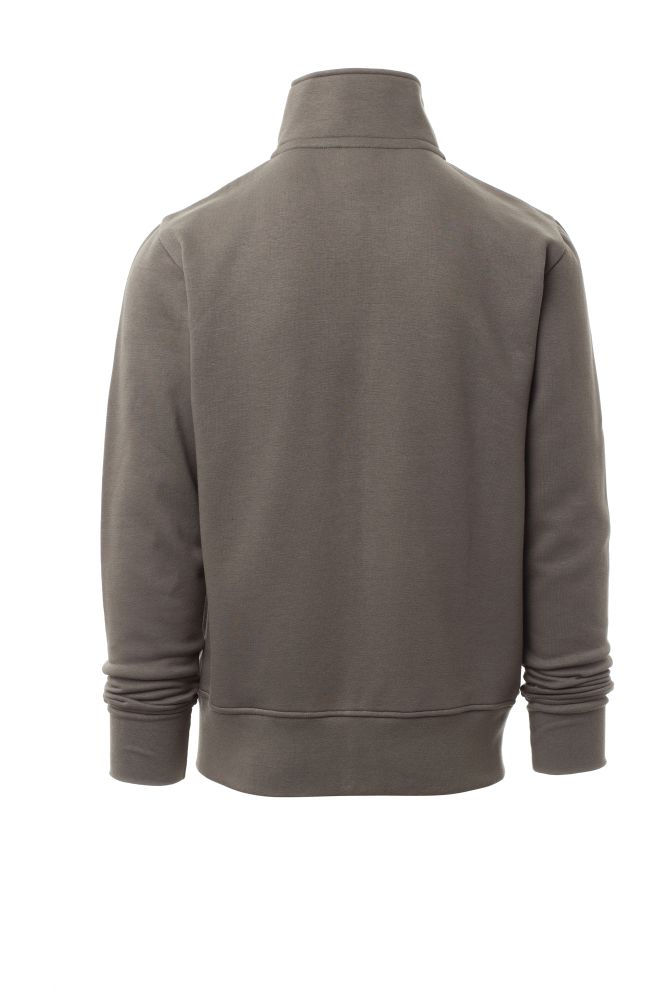 Men’s sweatshirt, with matching full zip in plastic with single customised pull, fitted sleeves, two welt pockets with zip, stretch rib cuffs and hem, reinforced seams, matching inner neck tape reinforcement. 70 % cotton a 30 % polyester, 280 gsm.