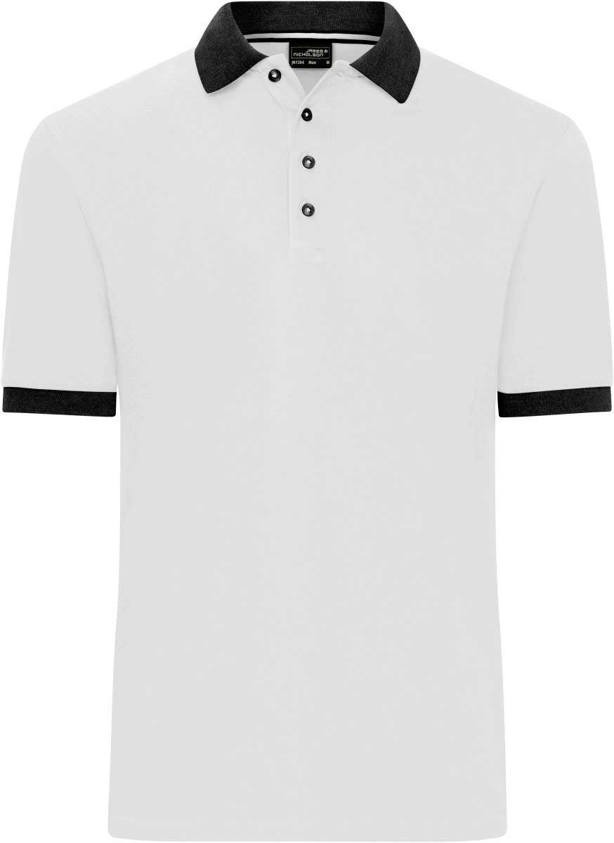 24 button-placket, necktape in contrasting color, knitted polo collar and cuffs in black color, side slits. Material: 195g/m2, 100% combed ringspun cotton.