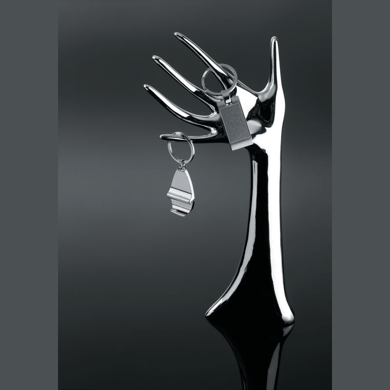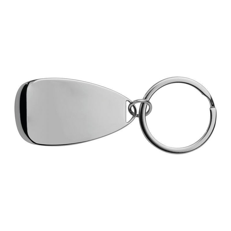 Metal key ring with bottle opener, glossy chrome. Product size: 8,3 x 2,8 cm
