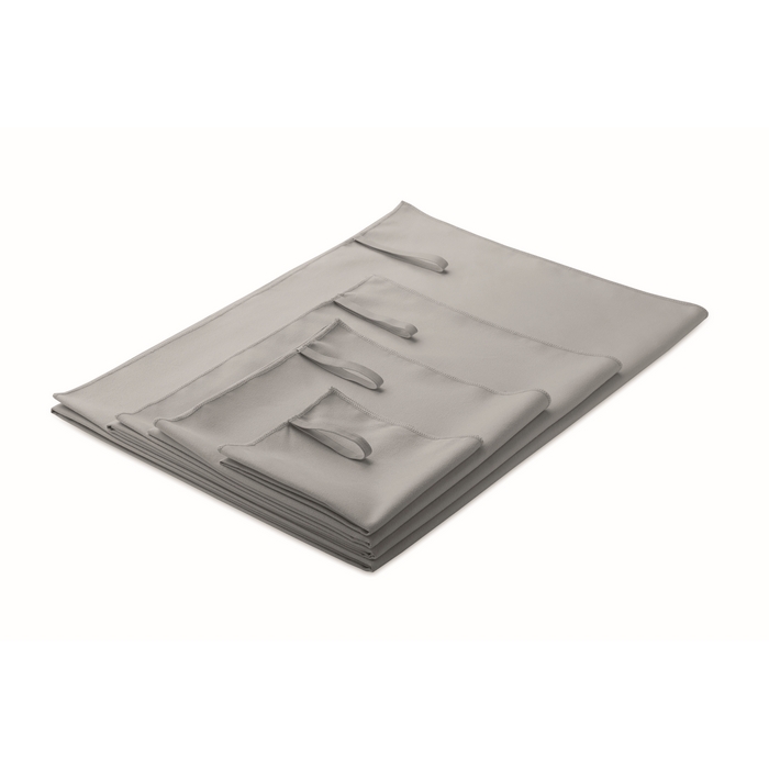 Microfibre towel made of 90% polyester and 10% polyamide with elastic handle. Lightweight and quick drying. Size 30 cm x 50 cm. Dimensions: 30 x 50 cm