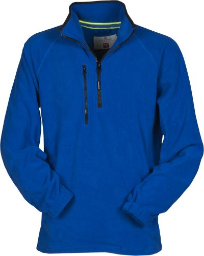 Fleece, with black plastic 8 mm half zip, raglan sleeves, adjustable drawstring at the waist, elasticated cuffs, two pockets with concealed zip, one front zip pocket, neck with contrasting reinforcement tape, reinforced seams.