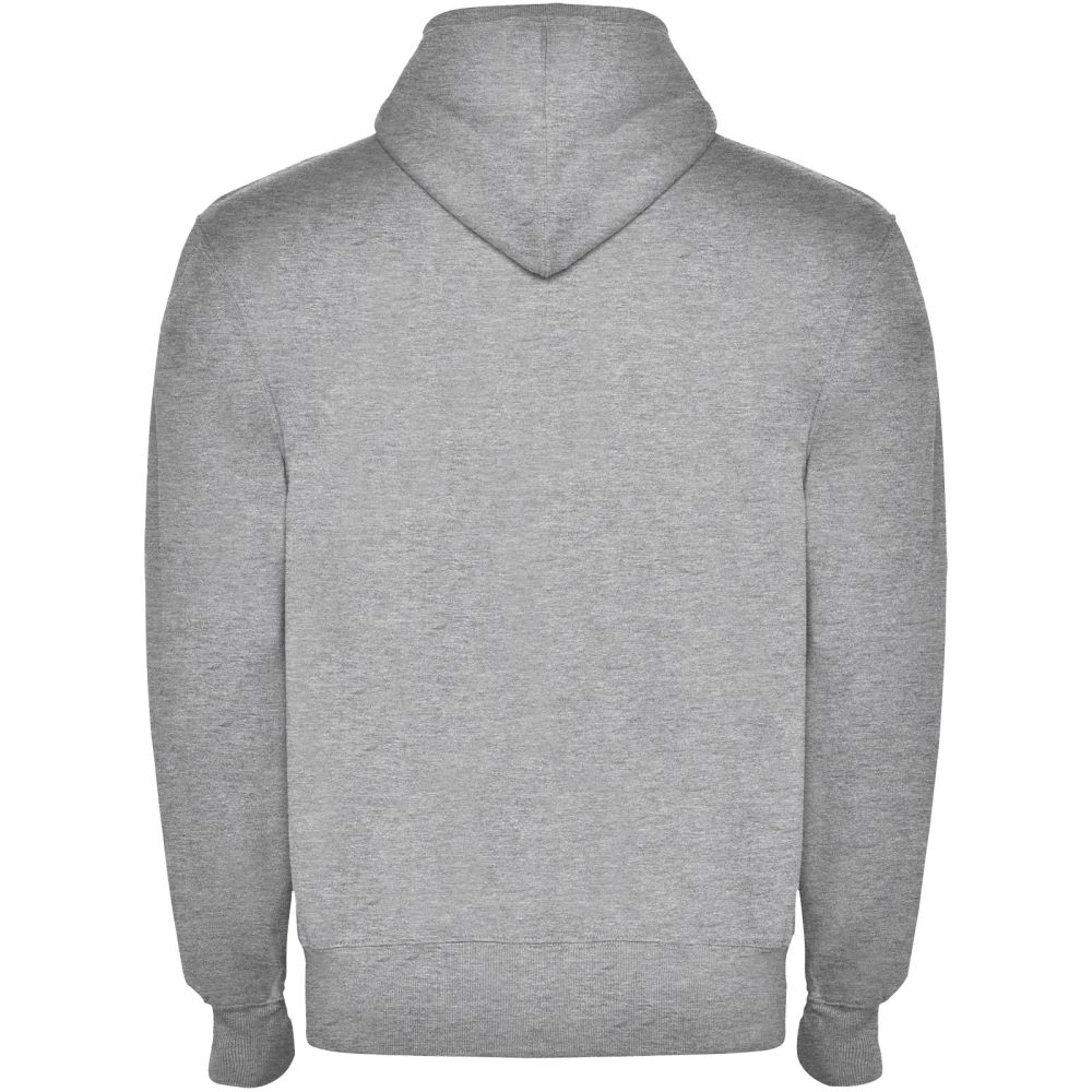 Sweat hooded jacket with high neck and full zip. Ribbed detail in hood and pocket piping. Kangaroo style pocket. 2x2 rib in cuffs and waist. Kids sizes available. Removable label. The model is 184 cm and is wearing size L.