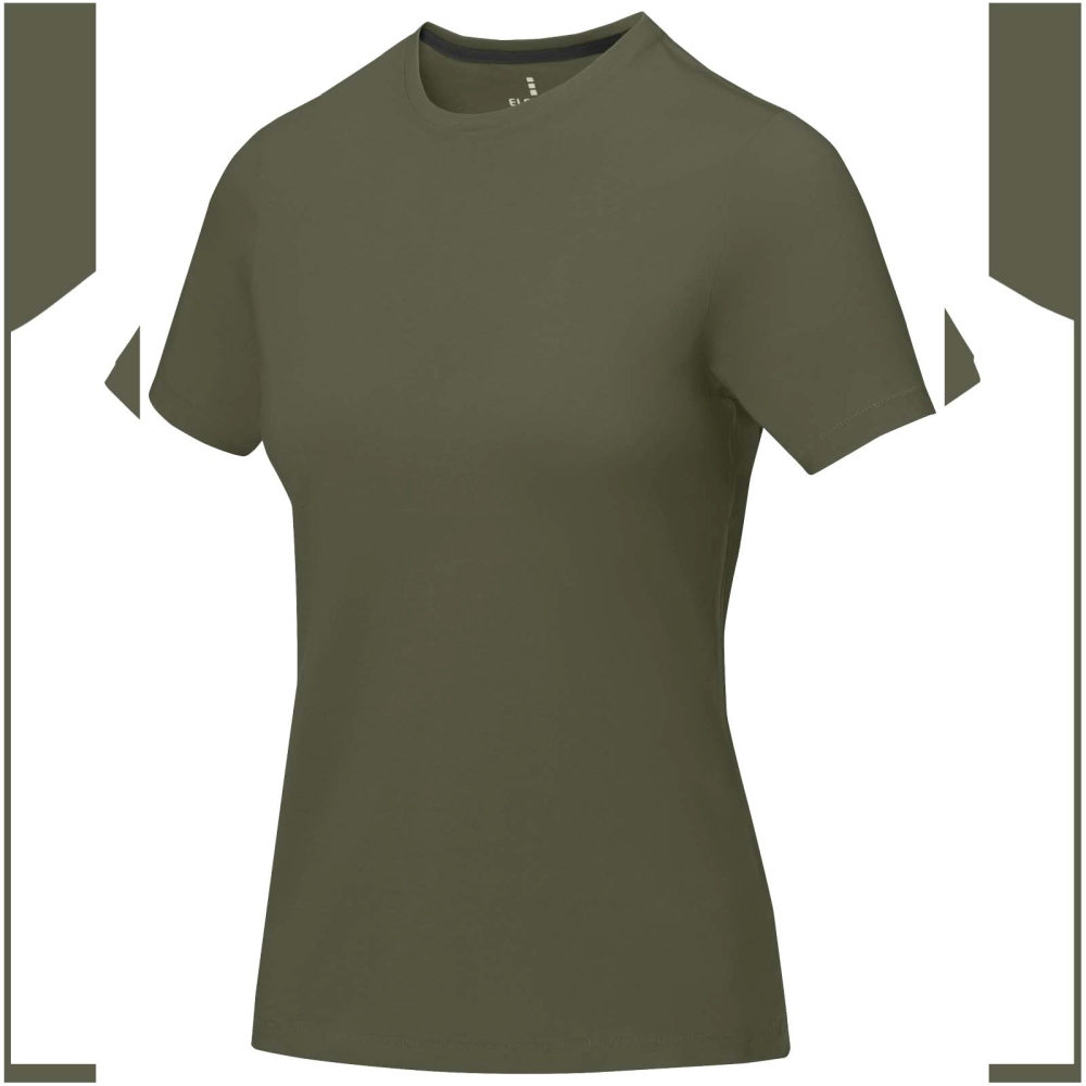 The Nanaimo short sleeve womens t-shirt made of 160 g/m2 cotton is perfect for any occasion and a comfortable addition to any wardrobe. The ringspun cotton provides a stronger and smoother yarn, resulting in a more durable fabric that guarantees high quality branding. It is shaped for a feminine look and has side seams to ensure a great fit, while the printed in-neck Elevate branding adds to its overall comfort. The re-enforced shoulders also ensure a continuous fit even after long-term use.