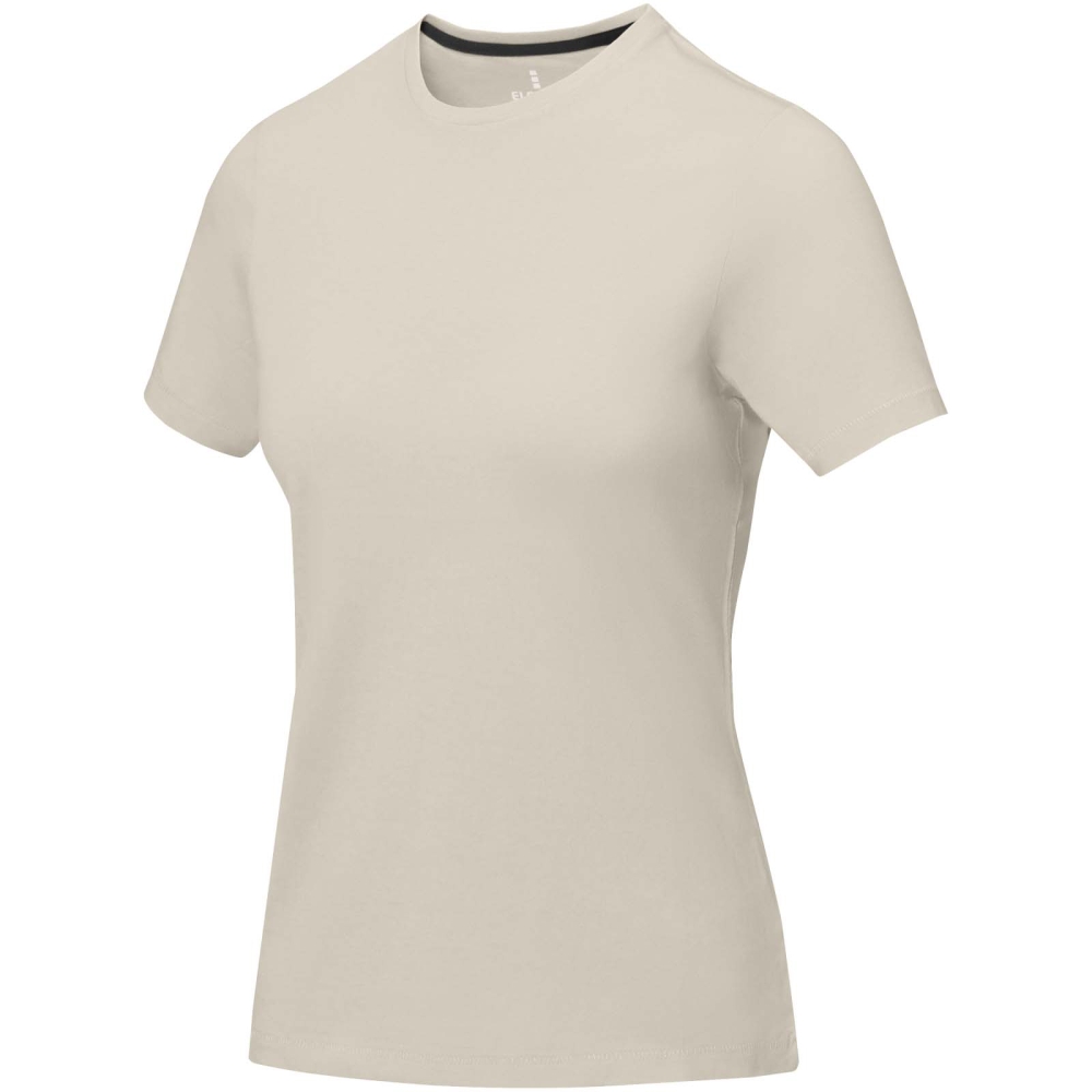 The Nanaimo short sleeve womens t-shirt made of 160 g/m2 cotton is perfect for any occasion and a comfortable addition to any wardrobe. The ringspun cotton provides a stronger and smoother yarn, resulting in a more durable fabric that guarantees high quality branding. It is shaped for a feminine look and has side seams to ensure a great fit, while the printed in-neck Elevate branding adds to its overall comfort. The re-enforced shoulders also ensure a continuous fit even after long-term use.