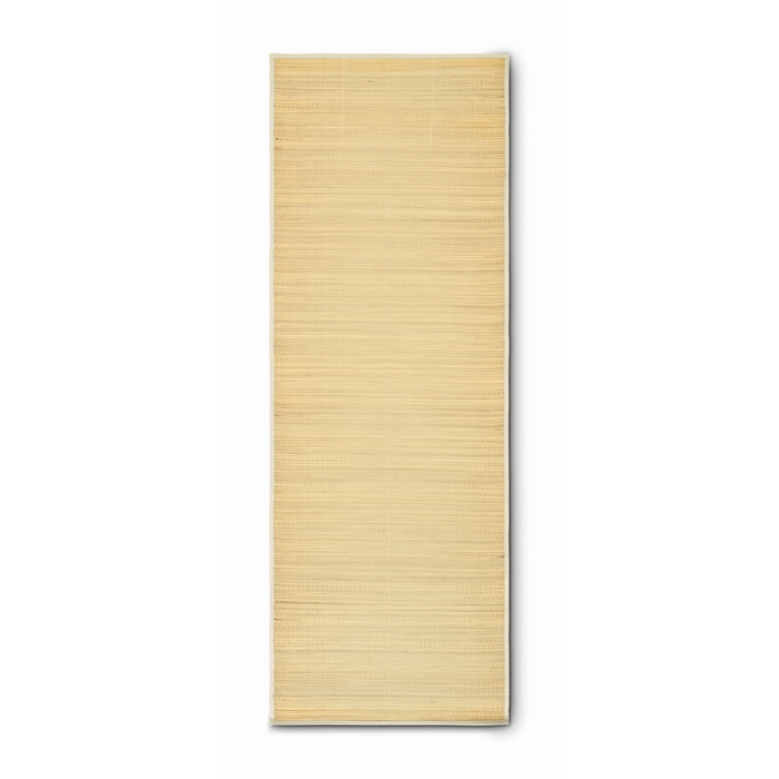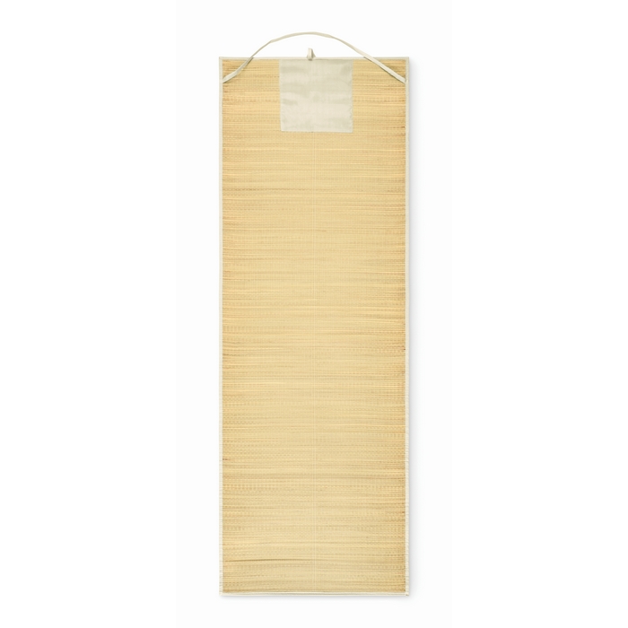Natural straw roll up beach mat with polyester carry strap. Dimensions: 180 x 60 cm