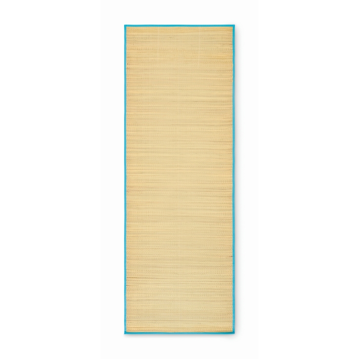 Natural straw beach mat, turquoise