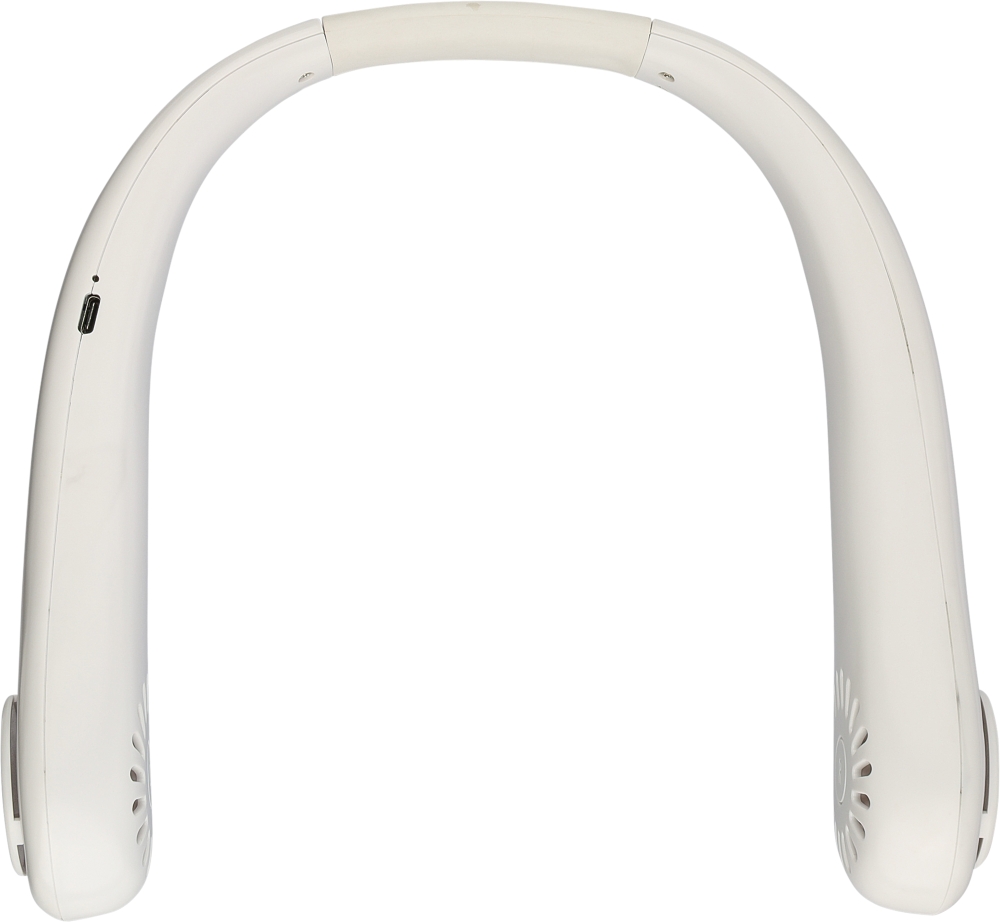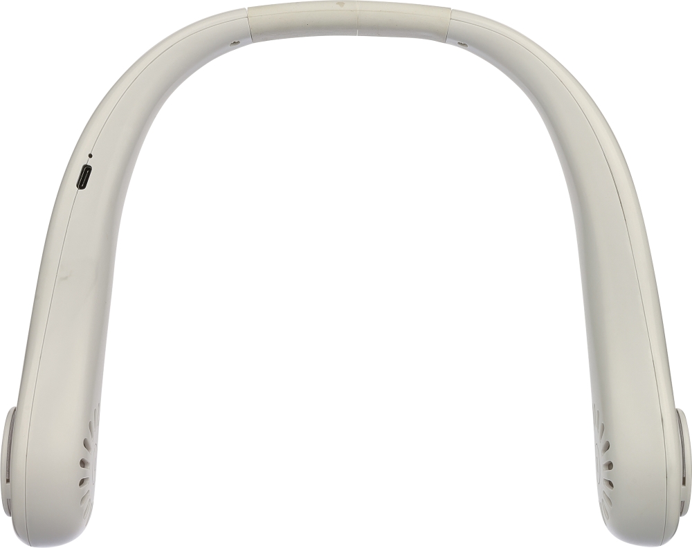 Neck ventilator with 800 mAh rechargeable battery and three speed modes. Made with ABS, offering strong impact resistance and long-lasting durability for everyday use. Worn around the neck to provide airflow to the neck and face. Includes 30 cm USB-C charging cable. Charging time 4–5 hours, working time 2–3 hours. Packed individually in a brown carton box with illustration. Dimensions: 6,2 x 20 cm