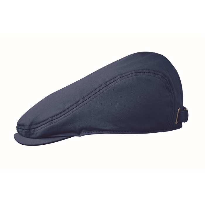 Newsboy flat cap in 235 gr/m2 twill cotton with metal buckle closure. Dimensions: 23 x 28 cm