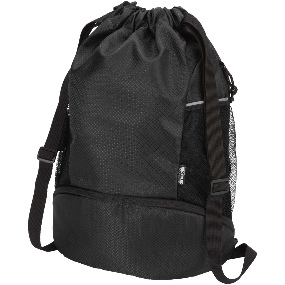 Nomad GRS recycled sports drawstring bag with bottom compartment 18L, solid black