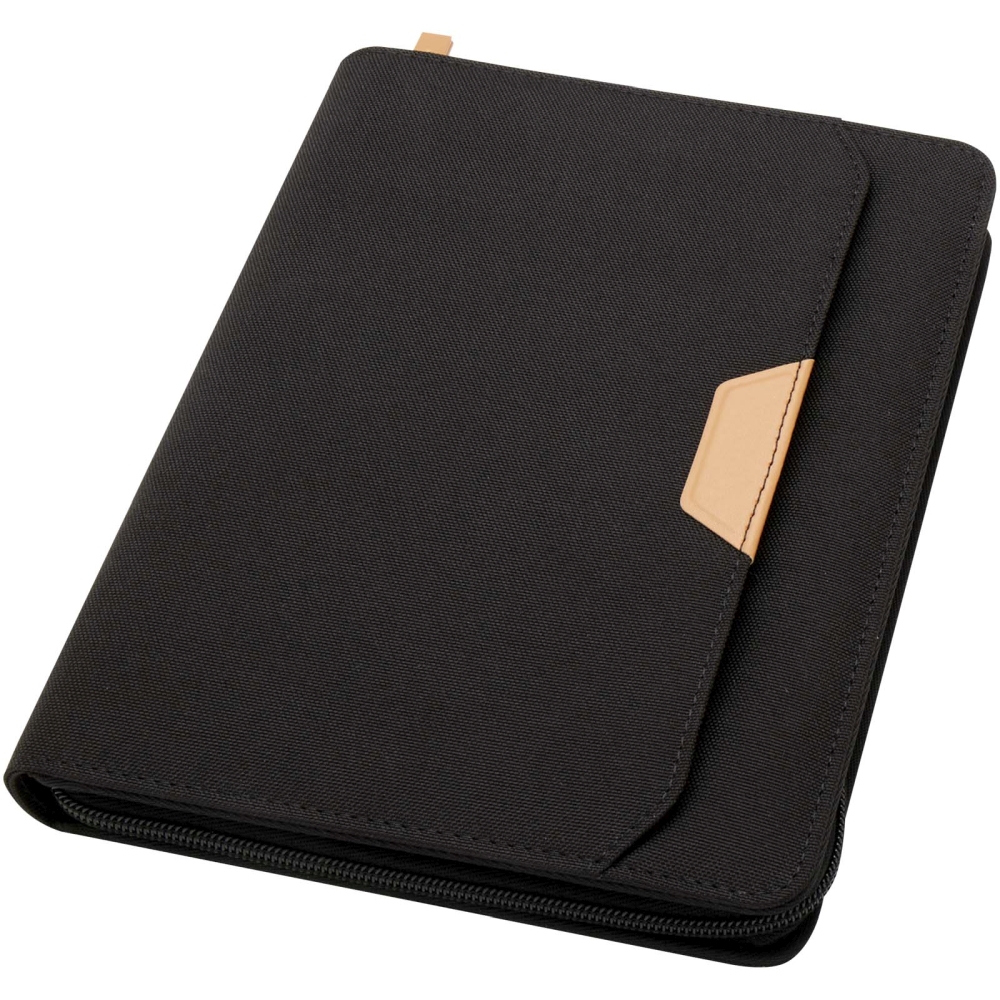 The Nomumi A5 portfolio with rounded corners is a handy office essential made of recycled plastic. Featuring 64 cream coloured 80 g/m2 lined sheets, a zipper closure, pen loop, and an accordion pocket. Dimensions: 22,5 x 18 cm