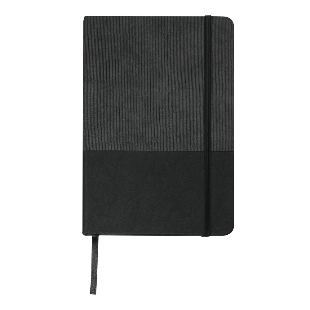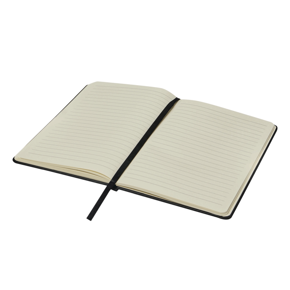 Notebook in DIN A5 size with rounded off corners, rubber band to close, with integrated bookmark, 80 pages, ruled, 70 g/m131. Dimensions: 21,5 x 14,3 x 1,4 cm