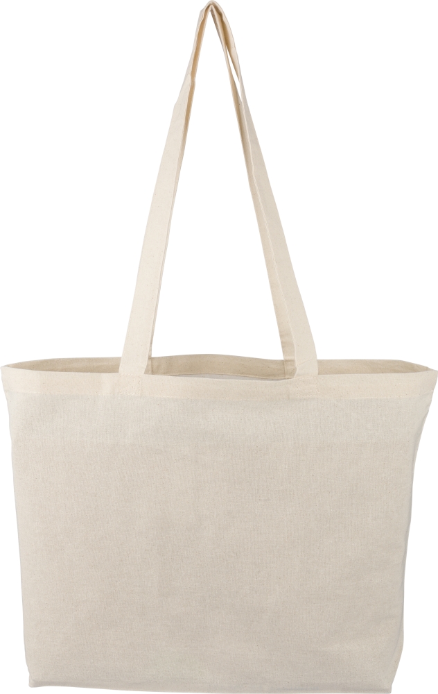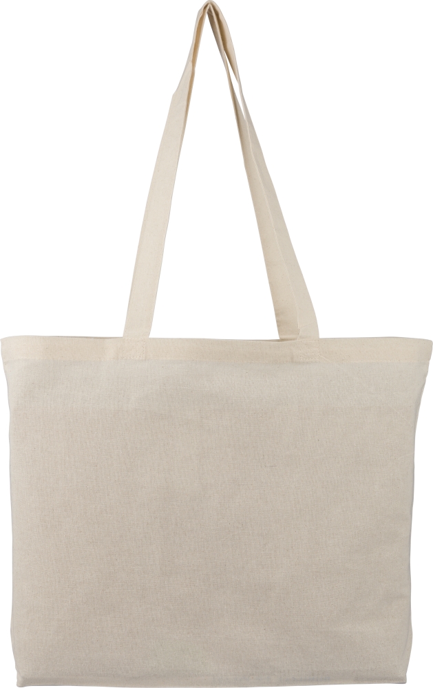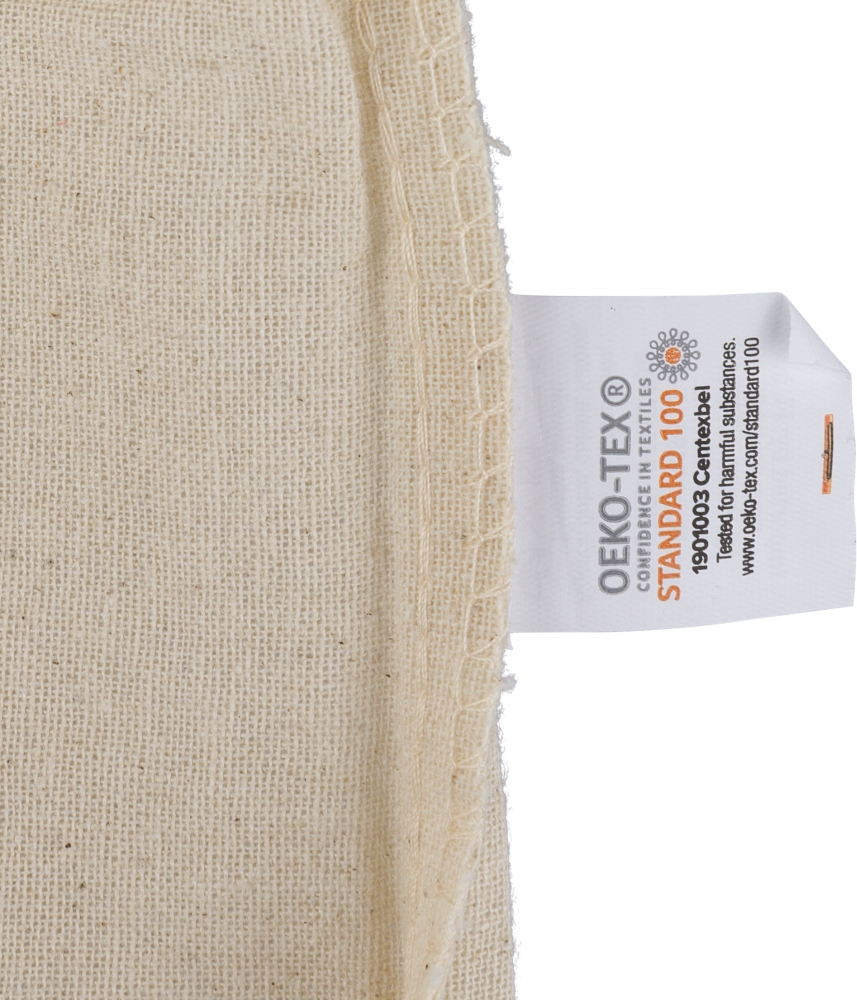Oeko-Tex® cotton (140 gsm) shopping bag in natural color. Size 48 × 34 × 10 cm with 70 cm long handles (2.5 cm width). Includes Oeko-Tex® label. Dimensions: 10 cm x 48 cm
