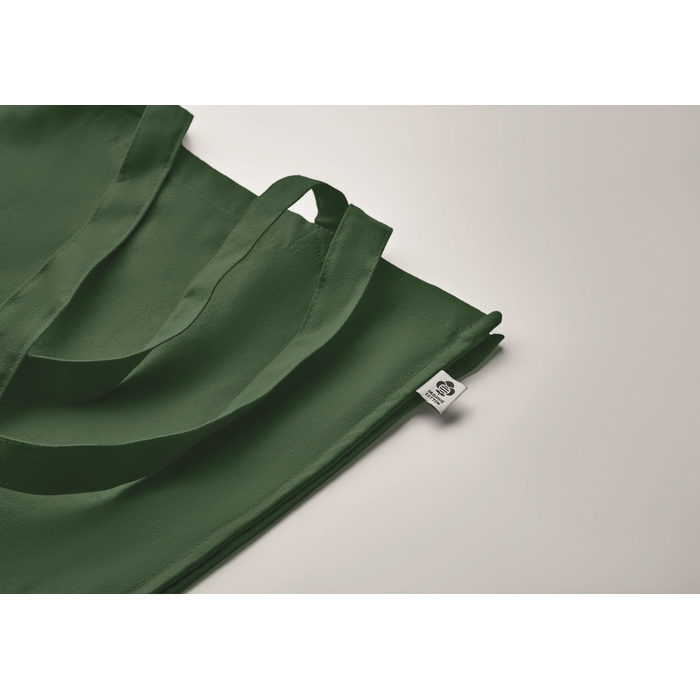 Organic cotton shopping bag with long handles and gusset. 220 gr/m2. Dimensions: 38 x 9 x 42 cm