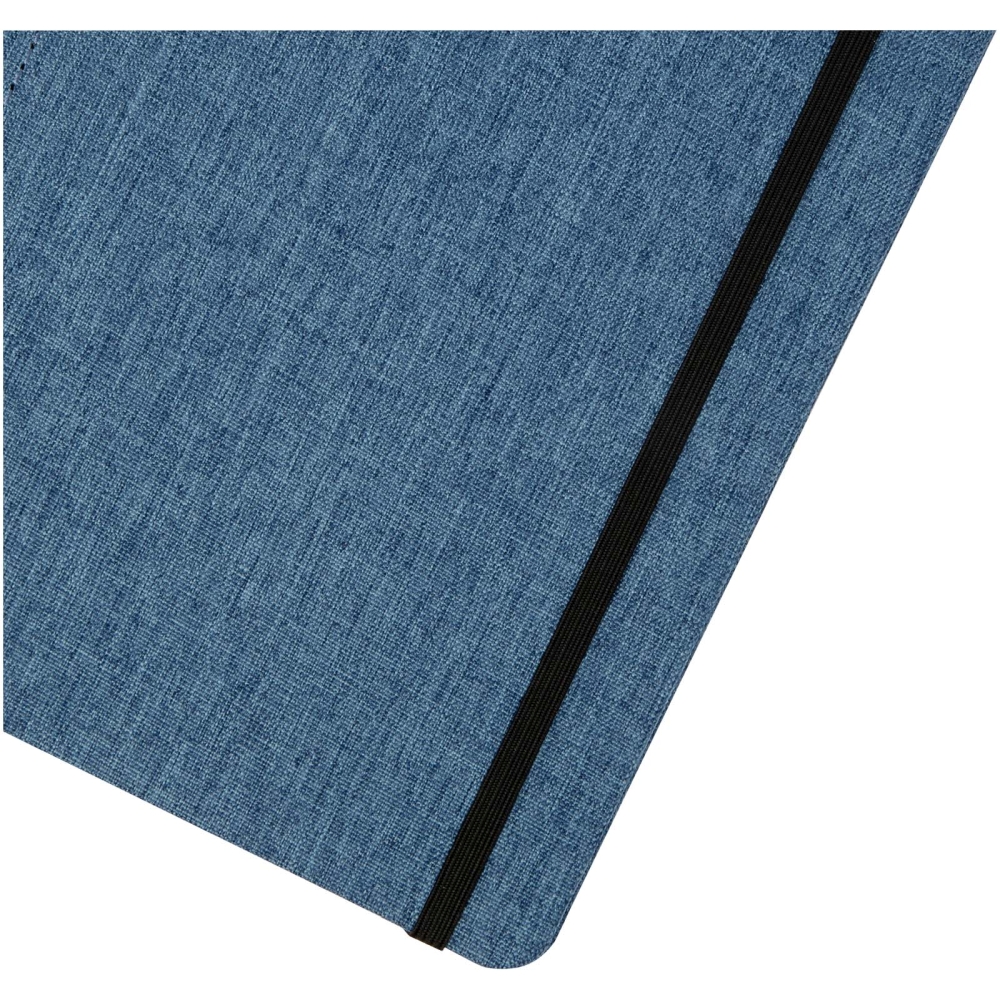 A5 size notebook with cover made of RPET fabric. Features 96 sheets 70 g/m2 recycled paper with lined layout, a pen loop and ribbon marker. Packed in a cardboard sleeve. Dimensions: 21,5 x 14,5 cm