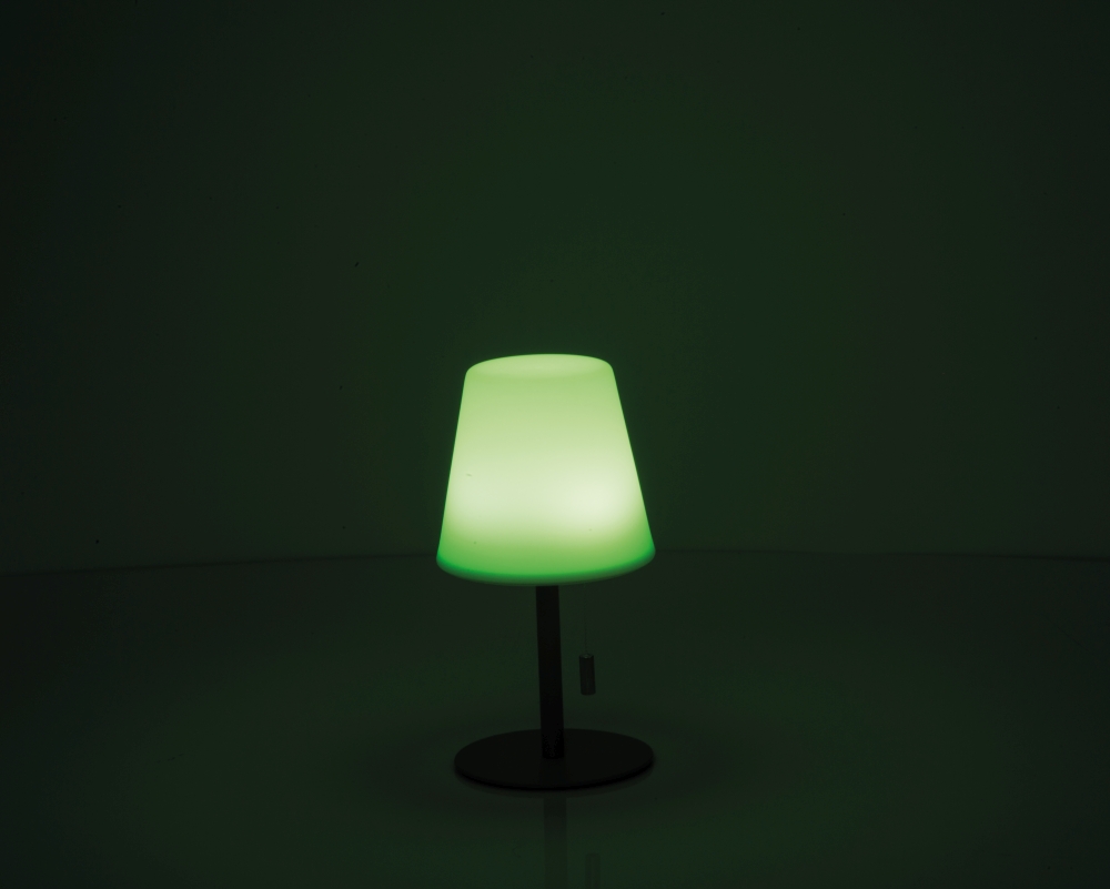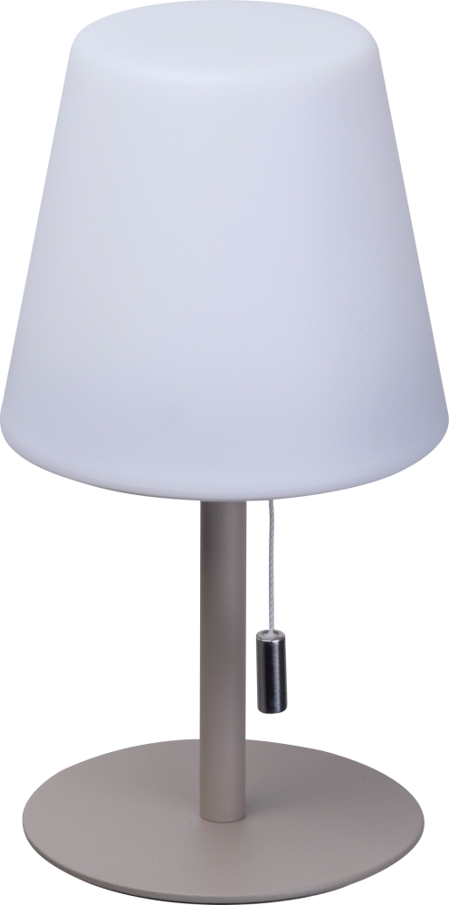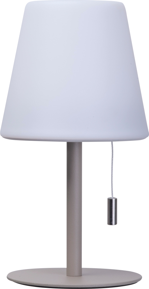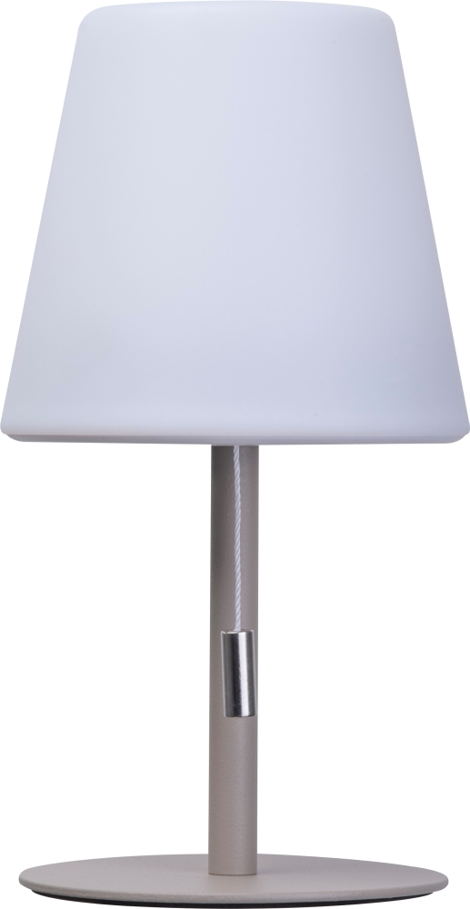 Small outdoor lamp with color change in a compact size (O 11 × 20 cm), a runtime of 4–10 hours, 3.7V, and a rechargeable 1,200 mAh battery, lampshade is made from PP , lampbase is metal. Ideal for the garden, terrace, or balcony. The lamp creates a pleasa Dimensions: o 11 x 20 cm