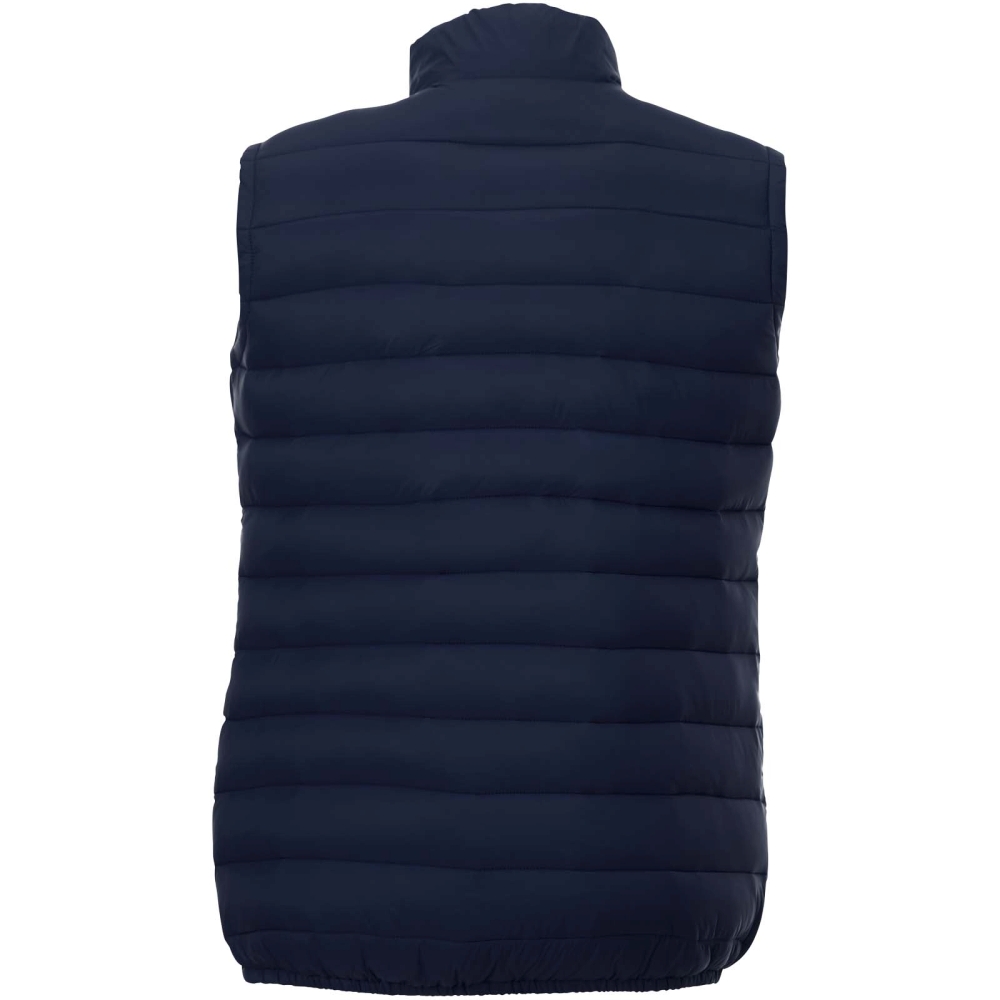 The Pallas womens recycled insulated bodywarmer – a perfect blend of style and functionality. Stay protected from cold and wind with the inner stormflap featuring a chinguard. The bodywarmerss chest pocket with zipper closure provides a secure space for your essentials. The elasticated binding adds a stylish touch while ensuring a secure fit. Made of 38 g/m2 of dull cire 380T nylon woven fabric, the bodywarmer offers a sleek and durable exterior. The padding and filling consist of fake down insulation made of polyester, providing lightweight warmth without compromising on comfort. This bodywarmer is designed with a fitted shape for a feminine look.