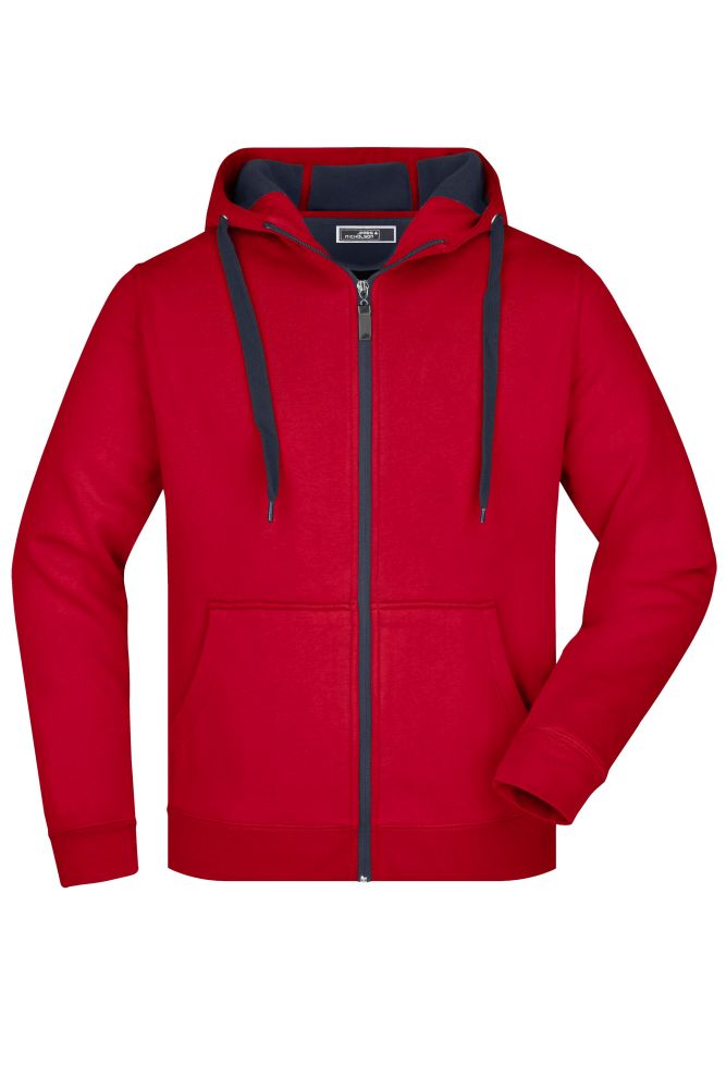 Pánská mikina James & Nicholson Doubleface, červená/tmavě šedá, velikost S