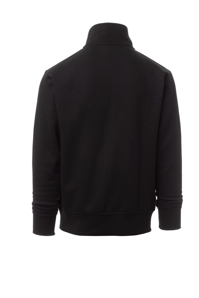 Men’s sweatshirt, with matching full zip in plastic with single customised pull, fitted sleeves, two welt pockets with zip, stretch rib cuffs and hem, reinforced seams, matching inner neck tape reinforcement.