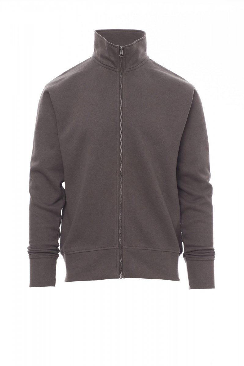 Men’s sweatshirt, with matching full zip in plastic with single metal pull, fitted sleeves, stretch rib cuffs and hem, reinforced seams, matching inner neck tape.