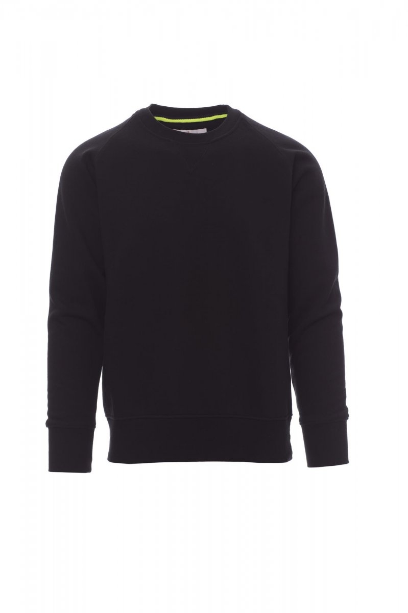 Men’s sweatshirt with crew neck, raglan sleeves, stylish V-stitching on the collar, stretch rib cuffs and waist, reinforced stitching. 70% cotton, 30% polyester, 300 gsm. Sizes: S-M-L-XL-XXL-XXXL.
