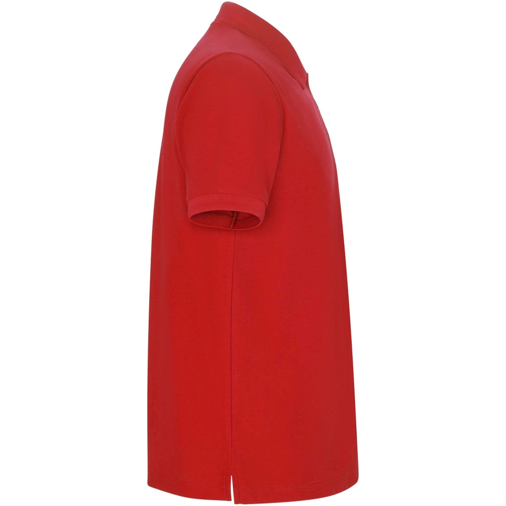 Short-sleeve polo shirt. Collar and sleeves edging in 1x1 ribbed fabric with detail. 3-button placket. Reinforced covered seams in collar. Side slits and optional pocket. Washable at 60 degrees. Removable label. Anti-pilling treatment.