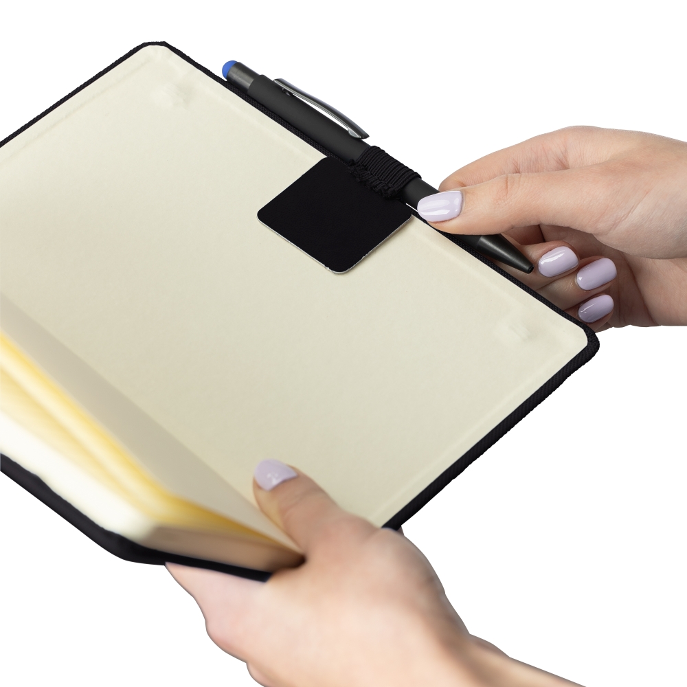 Pen loop sticker with elastic ring designed to securely hold a pen or pencil. Made with durable, flexible materials (PU) that provides comfort, cushioning, and long-lasting performance. The adhesive backing allows easy attachment to the inside cover of notebooks, planners, or folders. A practical add-on for keeping writing instruments in place and within reach. Dimensions: 0,1 x 6,1 cm