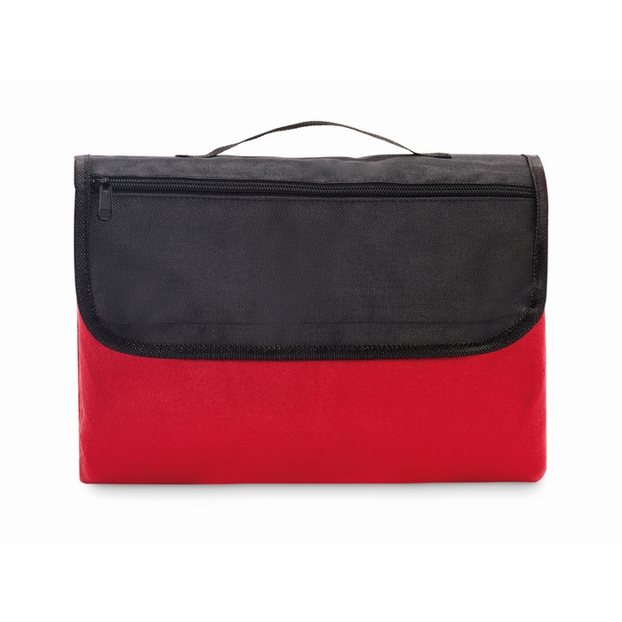 Foldable RPET 150 gr/m2 (68% recycled polyester/32% regular polyester) polar fleece picnic blanket with water resistant coated PEVA reverse side. Front flap with zippered pocket and handle. Rozměry: 200 x 200 cm