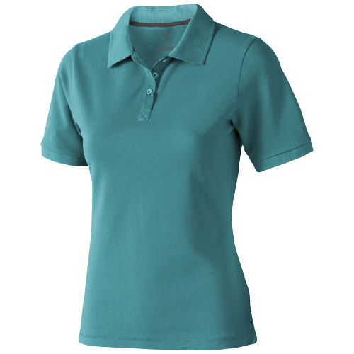 Calgary ladies polo. Pre-shrunk. 1x1 rib collar and cuffs. Tonal logo print at back. Forwarded shoulder seam with chain stitching. Satin neck tape. Side slit with satin tape on inside. Mens and Kids 2 button placket with engraved buttons. Ladies 3 button placket with engraved buttons. Corporate yet casual polo. Pick-Stitch details. Pique knit, 100% Cotton. 200 gsm